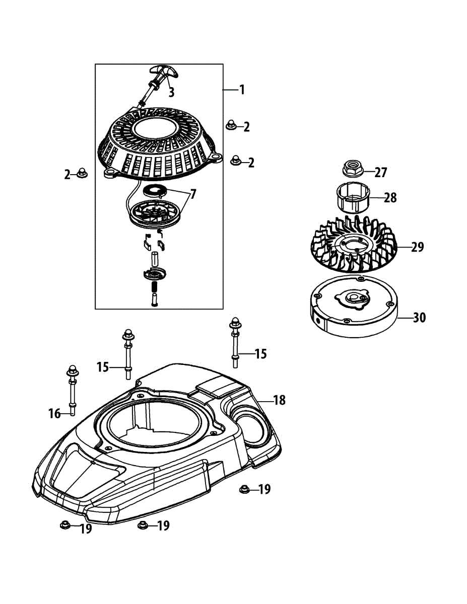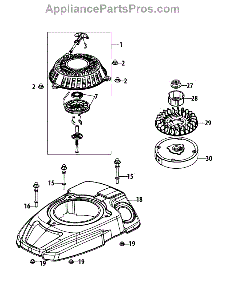 Won't start or pull cord snapped? This recoil starter assembly engages the flywheel to start your mower, tiller, or chipper. Moderate DIY repair.