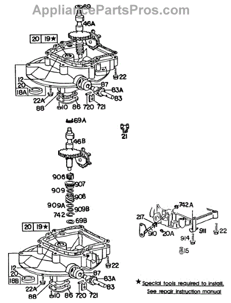 Parts for Briggs & Stratton 110988-0457-99: (2)Sump Bases,Right Angle Dr Parts