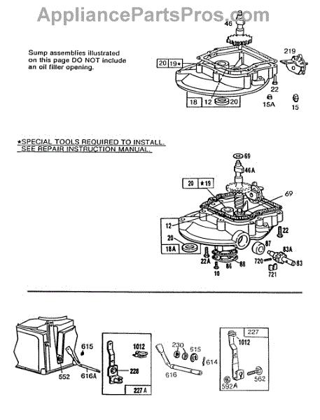 Parts for Briggs & Stratton 114988-0168-01: (2)Sumpbases,Governor Levers Parts