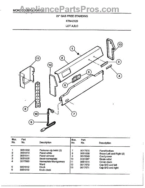Parts for Frigidaire 2129B: 21" Gas Free Standing Parts