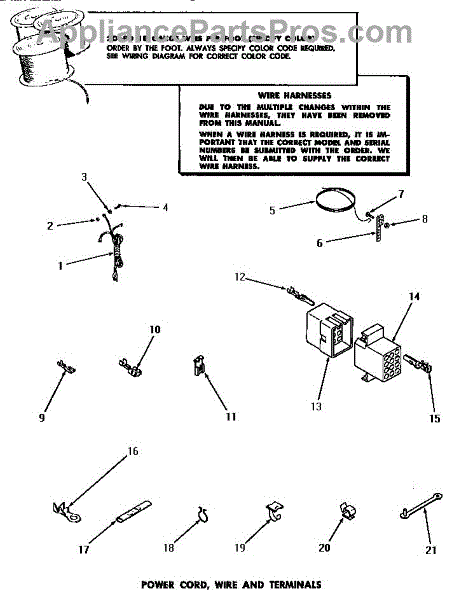 Parts for Amana DA3080: 21 - Power Cord, Wire & Terminals Parts