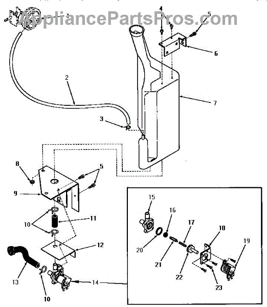 Parts for Amana DA3201: 23 - Reservoir And Drain Valve Parts