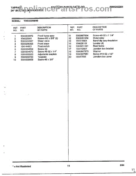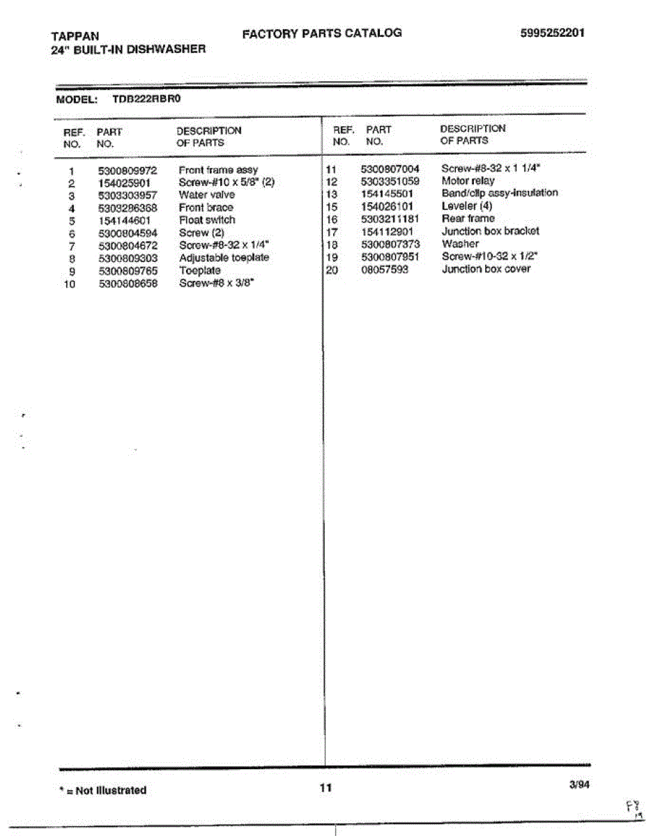 Parts for Frigidaire 68-1075: 24" Built-In Dishwasher Page 11 Parts