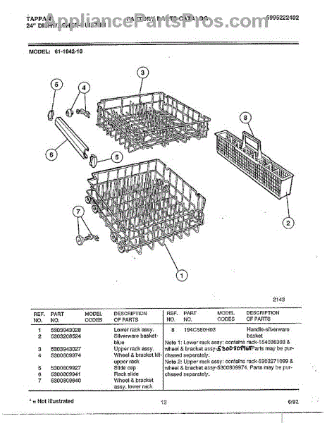 This upper dishwasher rack holds plates, glasses and small items on the top level so your dishes stay organized and cleaned during a cycle. It replaces a cracked, bent or worn upper rack to restore proper loading. What it does: