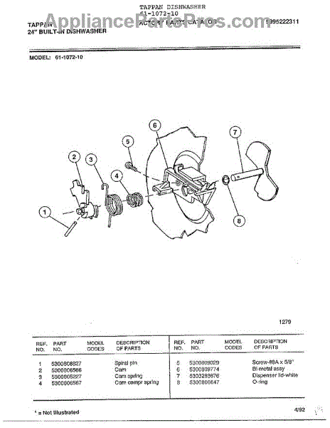 Parts for Frigidaire 61-1072-10: 24" Built-In Dishwasher Parts