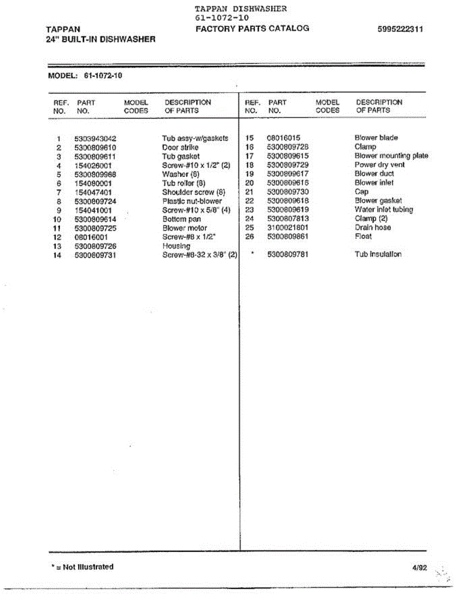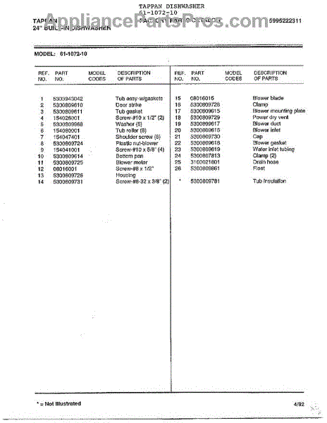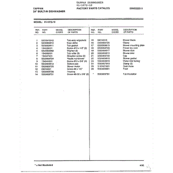 Parts for Frigidaire 61-1072-10: 24" Built-In Dishwasher Page 4 Parts