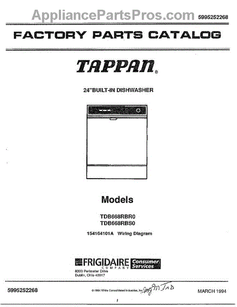 Parts for Frigidaire 68-1085: 24" Built-In Dishwasher Parts