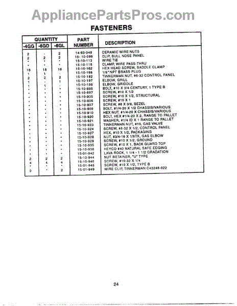 Parts for Thermador PCS484GG: 24 - Fasteners Parts