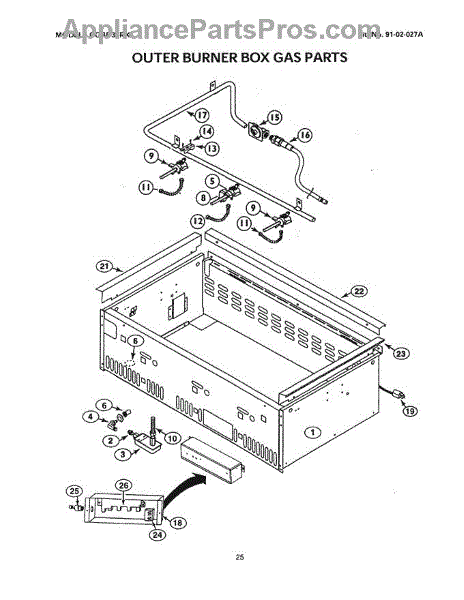 This gas pressure regulator controls and stabilizes incoming supply pressure to the appliance manifold, helping ensure consistent burner flames and reliable ignition. Replace if the original regulator is sticking or no longer maintaining correct pressure.