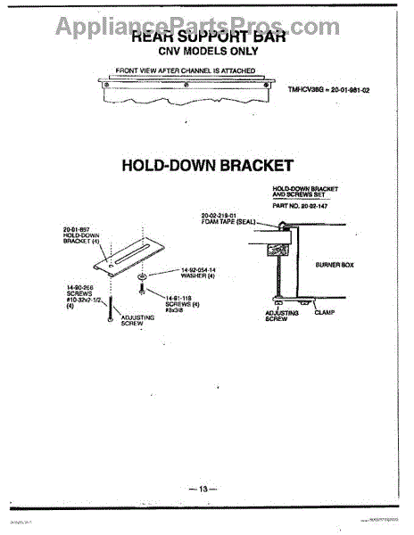 Parts for Thermador TSS42QBB: 24 - Rear Support Bar & Hold-Down Bracket Parts