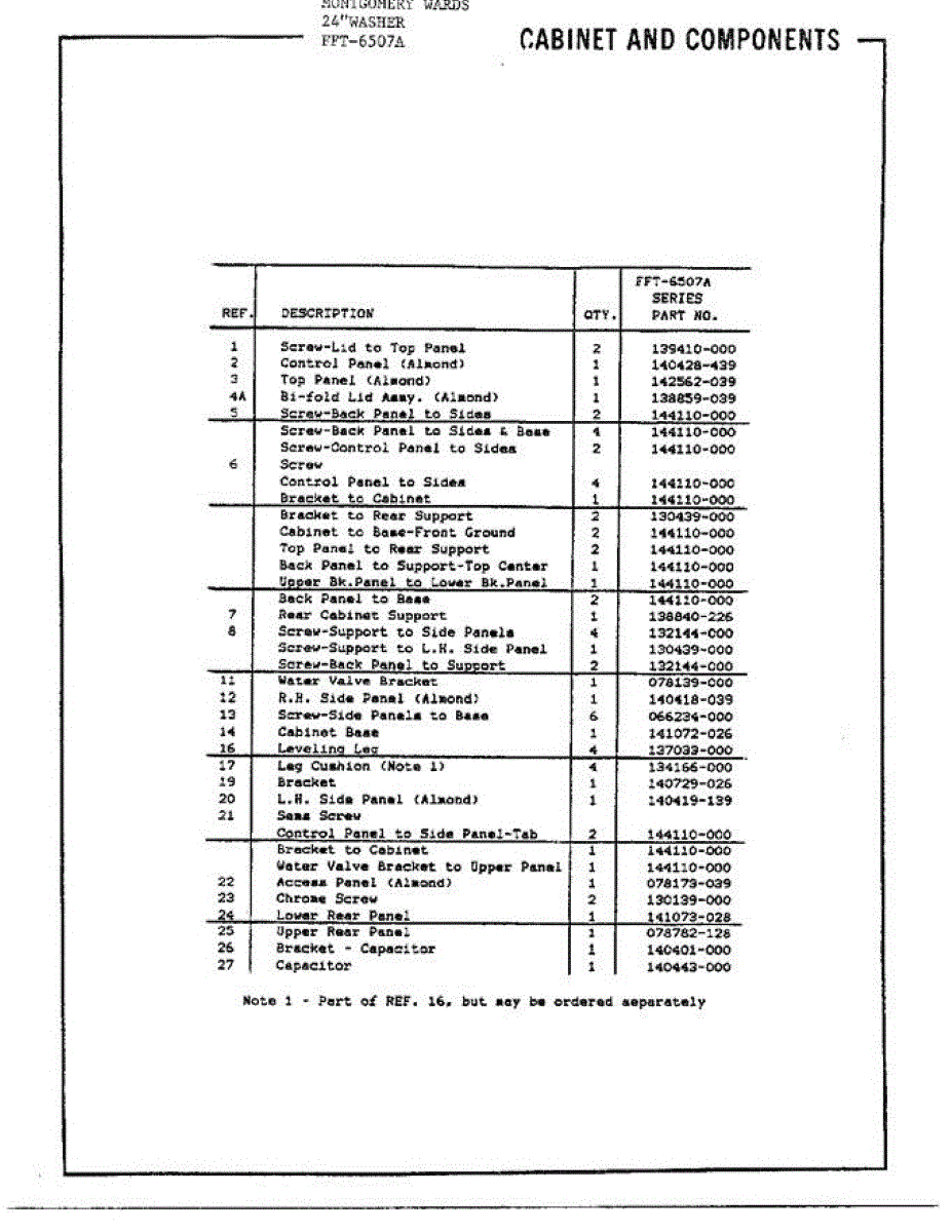 Parts for Frigidaire 6507A: 24` Washer / Cabinet And Components Page 2 Parts
