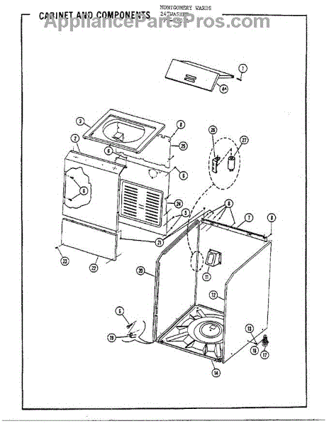 Parts for Frigidaire 6507A: 24` Washer / Cabinet And Components Parts