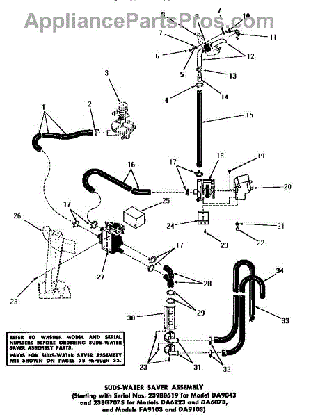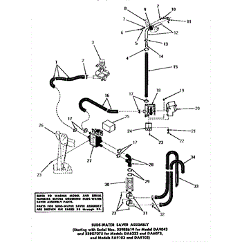 Parts for Amana DA6223: 26 - Suds-Water Saver Assy Parts