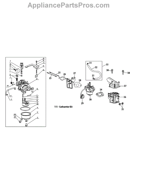This carburetor repair kit is a genuine MTD part, sold individually. This carburetor repair kit can be used as a replacement part in a snowblower. This kit contains everything needed to repair or rebuild a snowblower's carburetor.Signs of a damaged carburetor could include an engine that hard starts, does not start, or results in black smoke pluming out of the exhaust tube. If this occurs, the carburetor repair kit should be ordered as soon as possible to assess and inspect the carburetor for potential damage.This is a genuine OEM replacement part sourced directly from the manufacturer. It is sold individually. This carburetor repair kit is compatible with the following outdoor appliance brands: MTD and Cub Cadet.