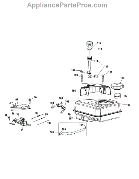 This fuel tank assembly can be used as a replacement part for the small engine of a snowblower or a tiller. The fuel tank assembly contains the fuel tank as well as the parts required to install the part. The purpose of the fuel tank is to store fuel for the engine and dispense the fuel in order to power the engine.A fuel tank assembly might be ordered as a complete replacement part if the fuel tank and its components suffer damage. This damage might manifest in the form of fuel leakages from punctures, holes, or corrosion to the material. If this damage affects the fuel tank and its components, it should be removed and replaced before using the appliance again. Remember to always wear gloves when handling, repairing, and operating outdoor equipment. This is an OEM part sourced directly from the manufacturer, MTD. It is sold individually. This fuel tank assembly is compatible with the following brands: MTD, Troy-Bilt, Yard Man, and Cub Cadet.