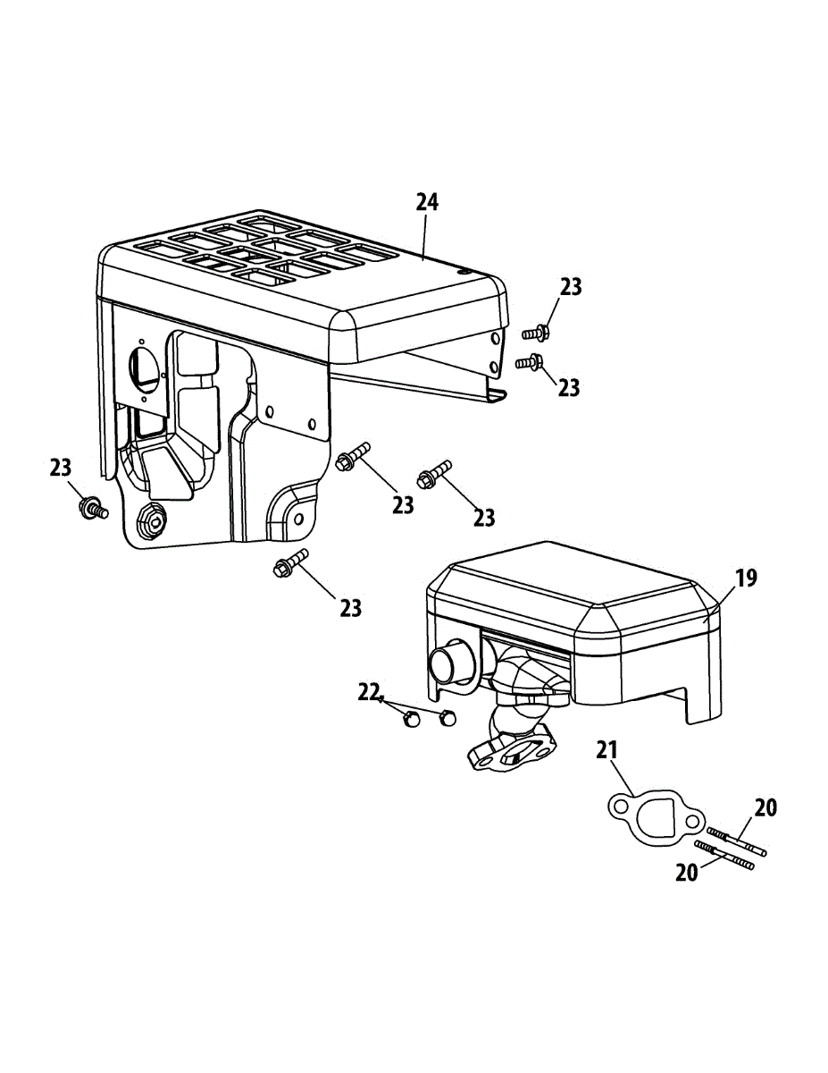 Protective shroud that covers the muffler on snow throwers. Replace if cracked, broken, or missing to shield the muffler and prevent debris contact.