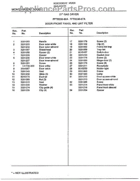 Parts for Frigidaire 8338A: 27` Door Front Panel / Lint Filter Page 2 Parts