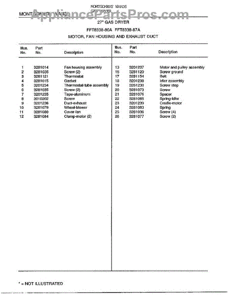 Parts for Frigidaire 8338A: 27` Motor / Fan Housing / Exhaust Duct Page 2 Parts