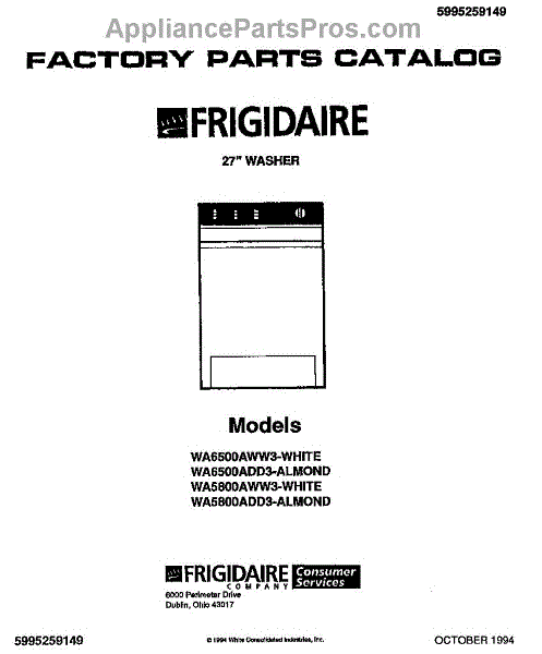 Parts for Frigidaire WA5800ADD3: 01 - 27`` Washer Parts