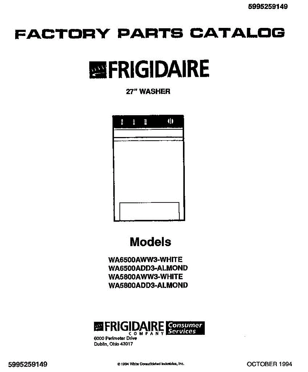 Parts for Frigidaire WA6500AWW3: 01 - 27`` Washer Parts