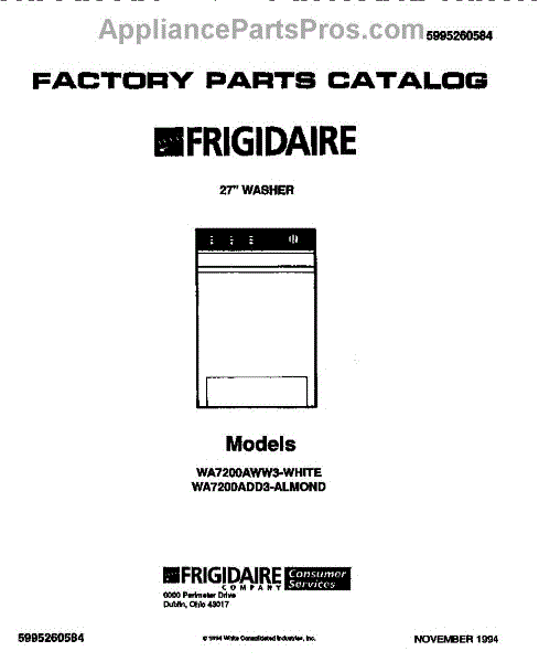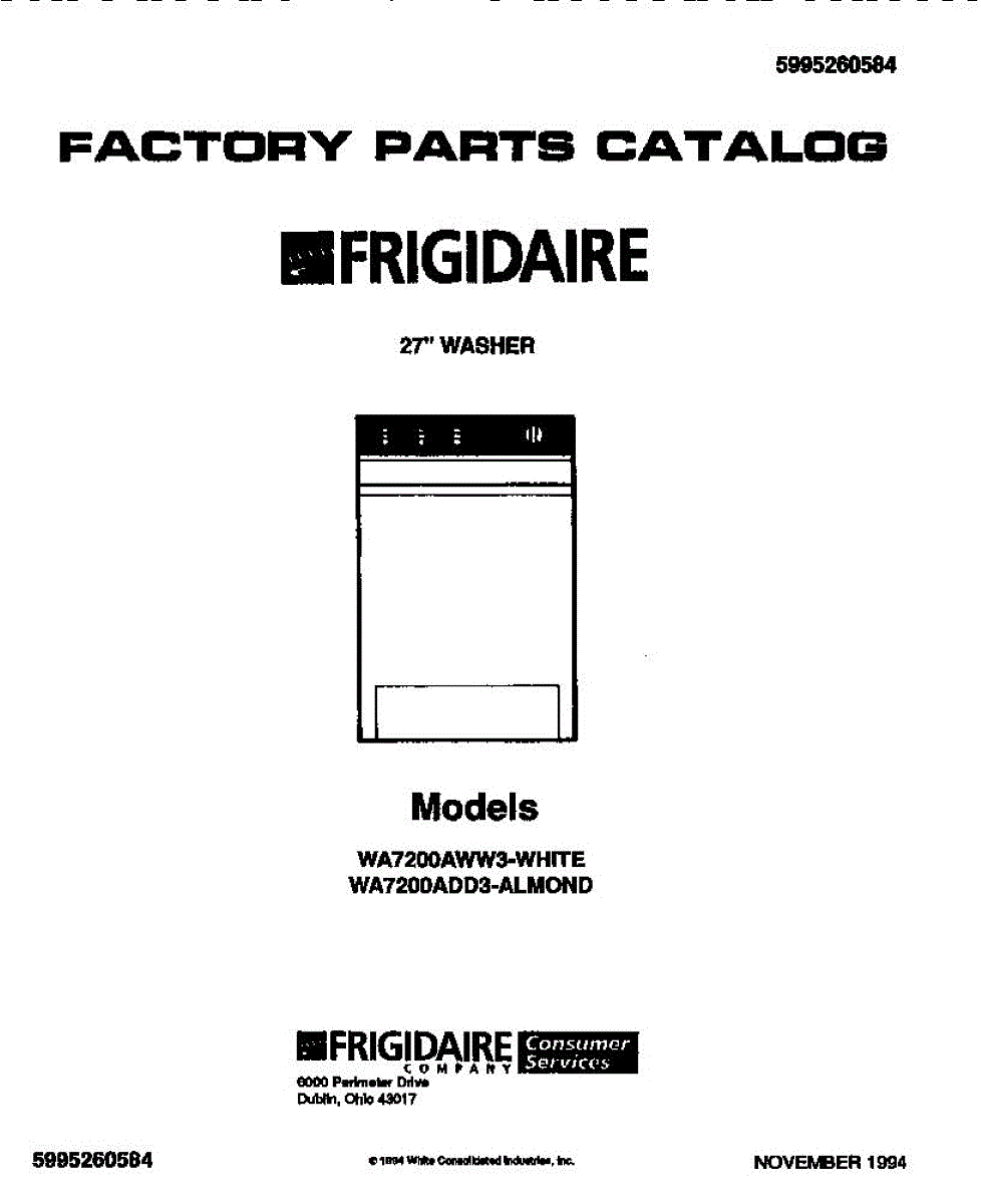 Parts for Frigidaire WA7200AWW3: 01 - 27`` Washer Parts