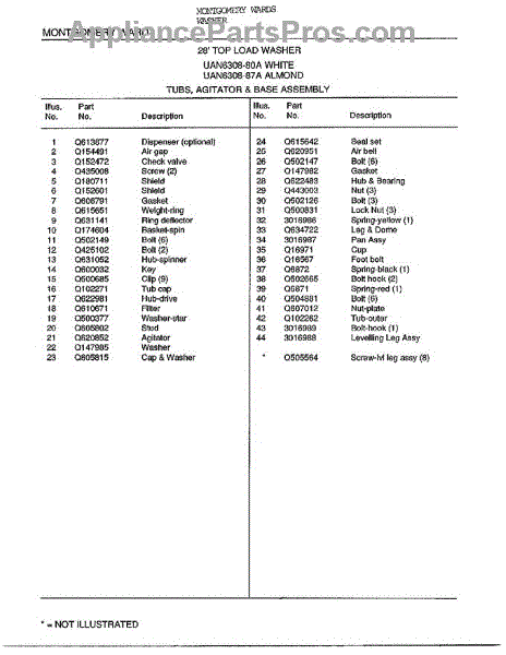 Parts for Frigidaire 6308A: 28` Top Load Tubs / Agitator / Base Page 2 Parts