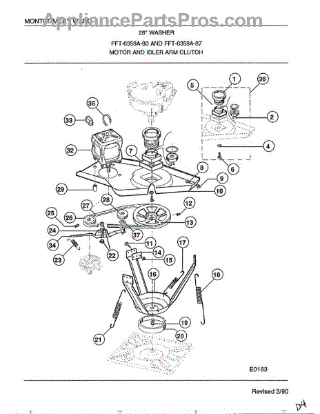 Parts for Frigidaire 6358A: 28" Washer / Motor And Idler Arm Clutch Parts