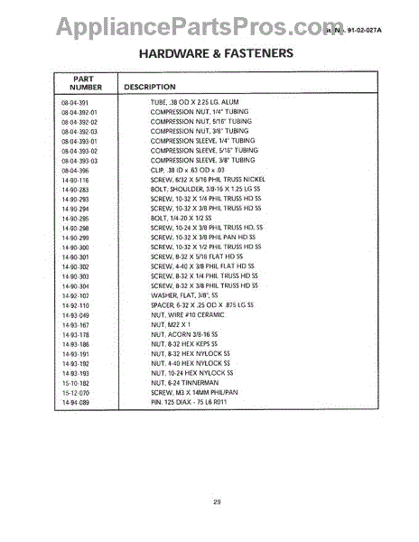 Parts for Thermador CGBD30RX: 29 - Hardware & Fasteners Parts