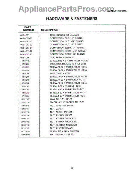 Replacement 1/4-20 x 1/2 stainless steel bolt that secures appliance components and restores proper fit. Use when mounting hardware is missing, corroded, or loose to stop rattling and maintain alignment. What it does:
