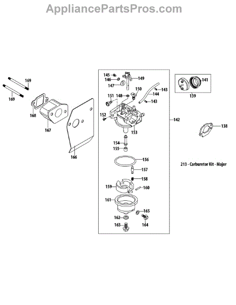 This replacement part is a carburetor kit. This is a genuine replacement part made by MTD. This kit is used to replace or repair the carburetor in an engine. This part ensures that the engine is able to run correctly and efficiently during use. A new carburetor kit might be needed if the current carburetor is no longer working properly. This can be due to an incident that may have damaged to the part or from general wear and tear over time. Refer to the proper user manual for more details and instructions on how to correctly repair this part. Work gloves are always recommended when working near the engine. This is a genuine OEM replacement part. This part is sold individually and is sourced directly from the manufacturer.