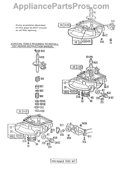 Parts for Briggs & Stratton 094988-0637-01: (3) Sump Base Assemblies Parts