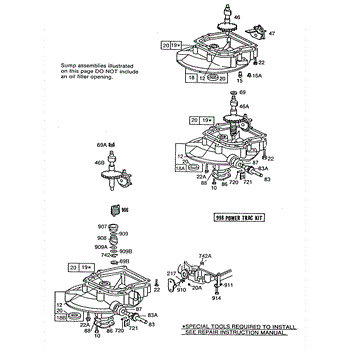 Parts for Briggs & Stratton 110908-1240-01: (3)Sump Bases,Right Angle Dr Parts