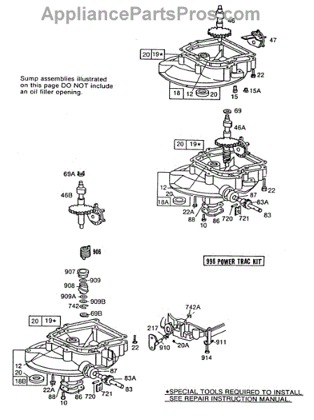 Parts for Briggs & Stratton 110988-1294-01: (3)Sump Bases,Right Angle Dr Parts