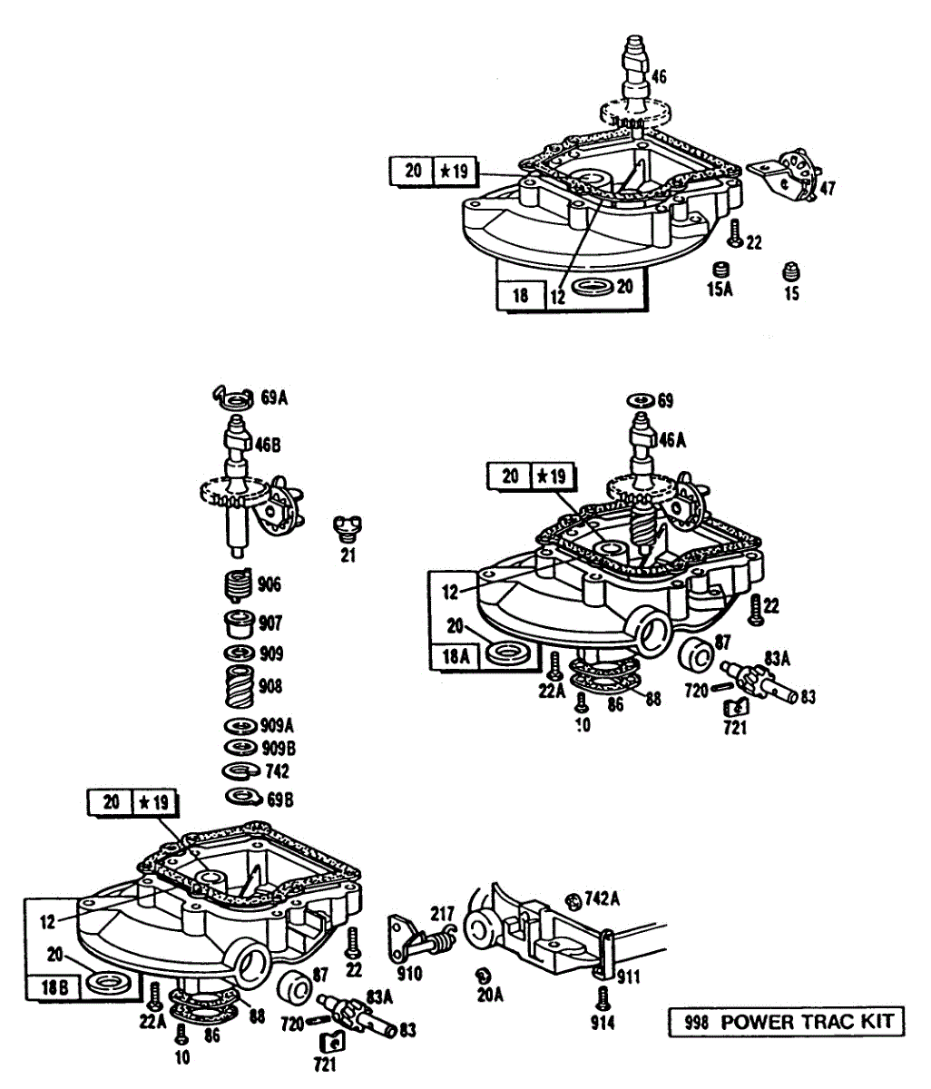 Parts for Briggs & Stratton 110782-3086-01: (3)Sump Bases,Right Angle Dr Parts