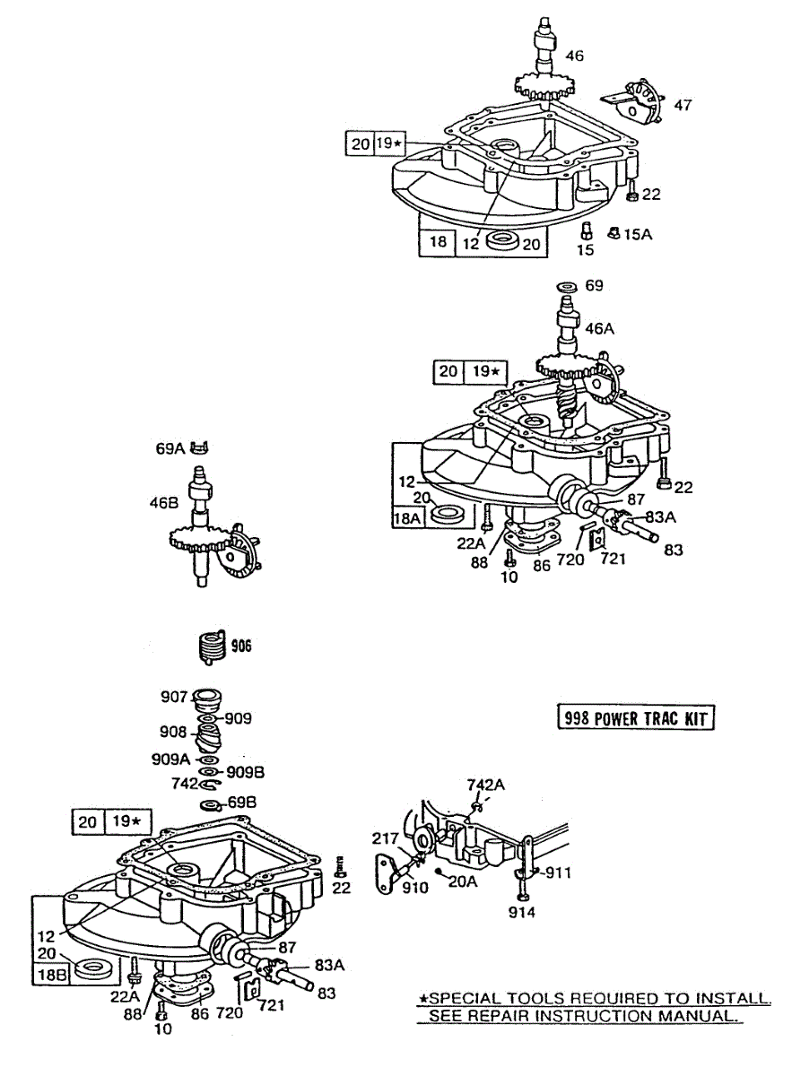 Parts for Briggs & Stratton 110902-3212-02: (3)Sump Bases,Right Angle Dr Parts