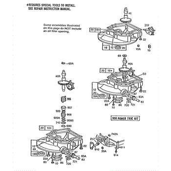 Parts for Briggs & Stratton 113908-0652-01: (3)Sump Bases,Right Angle Dr Parts