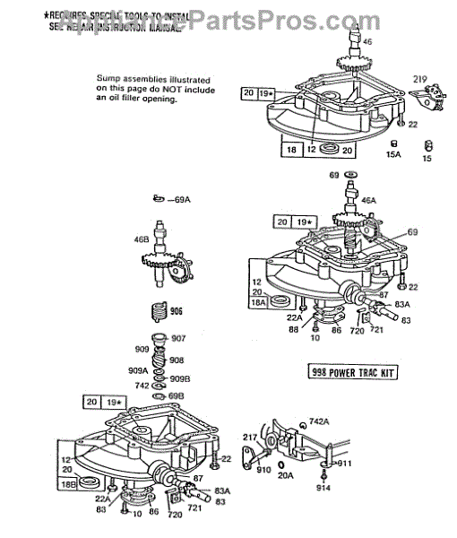Parts for Briggs & Stratton 113988-0636-01: (3)Sump Bases,Right Angle Dr Parts