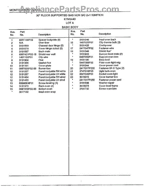 Parts for Frigidaire 2440A: 30" / Basic Body Page 2 Parts