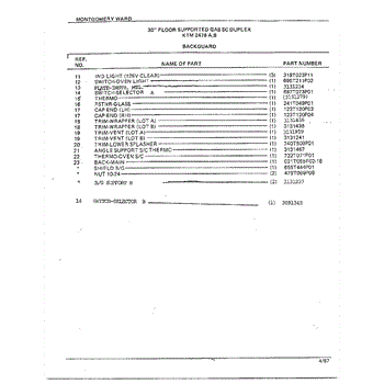 Parts for Frigidaire 2478A: 30" Floor / Backguard Page 2 Parts