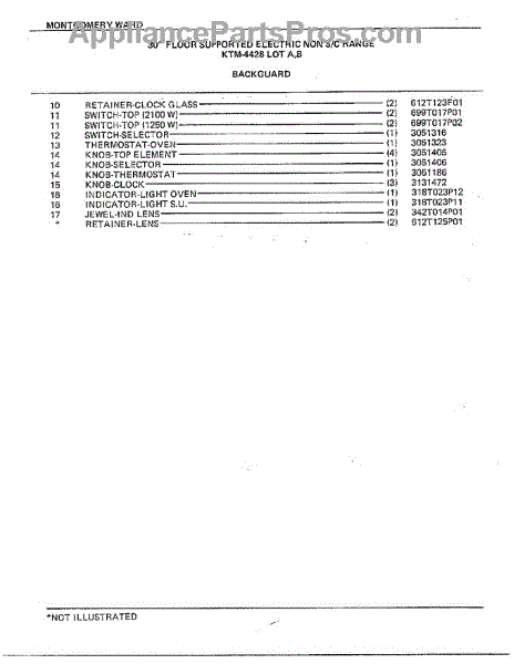 Parts for Frigidaire 4428B: 30" Floor / Backguard Page 2 Parts