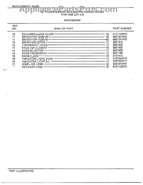 Parts for Frigidaire 4438A: 30" Floor / Backguard Page 2 Parts