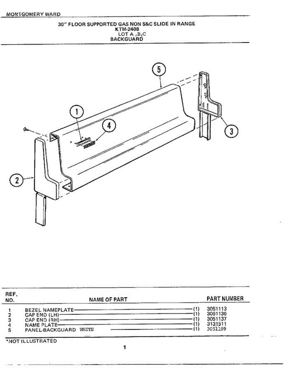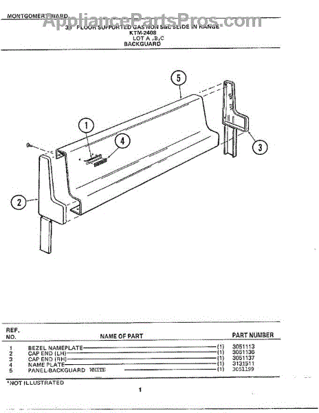 Parts for Frigidaire 2408C: 30" Floor Backguard Parts