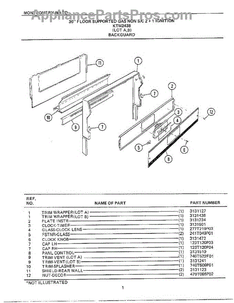 Parts for Frigidaire 2438A: 30` Floor Backguard Parts