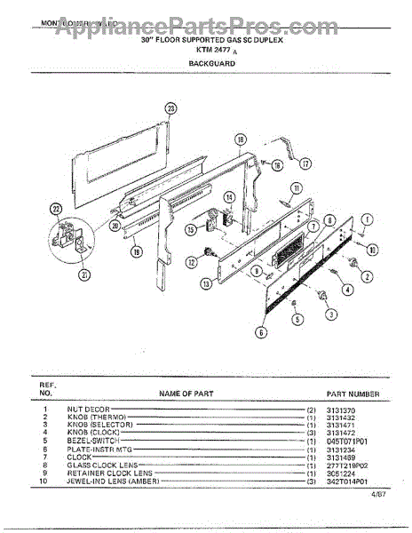 Parts for Frigidaire 2477A: 30" Floor / Backguard Parts
