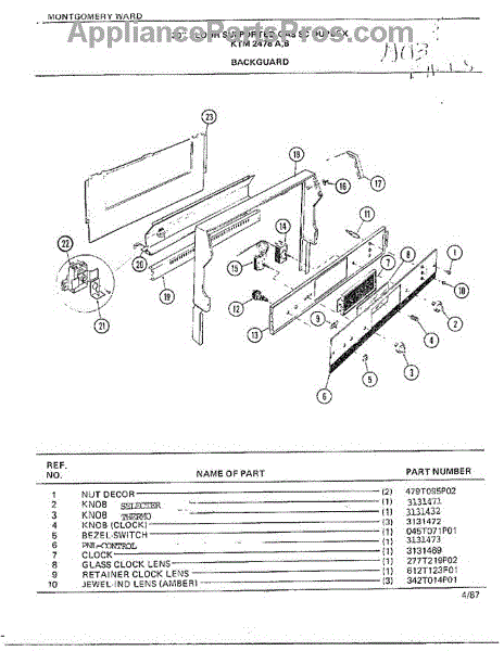 Parts for Frigidaire 2478B: 30" Floor / Backguard Parts