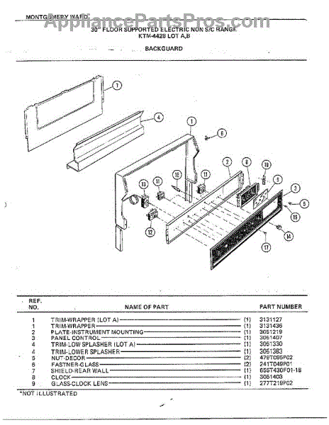 Parts for Frigidaire 4428A: 30" Floor / Backguard Parts