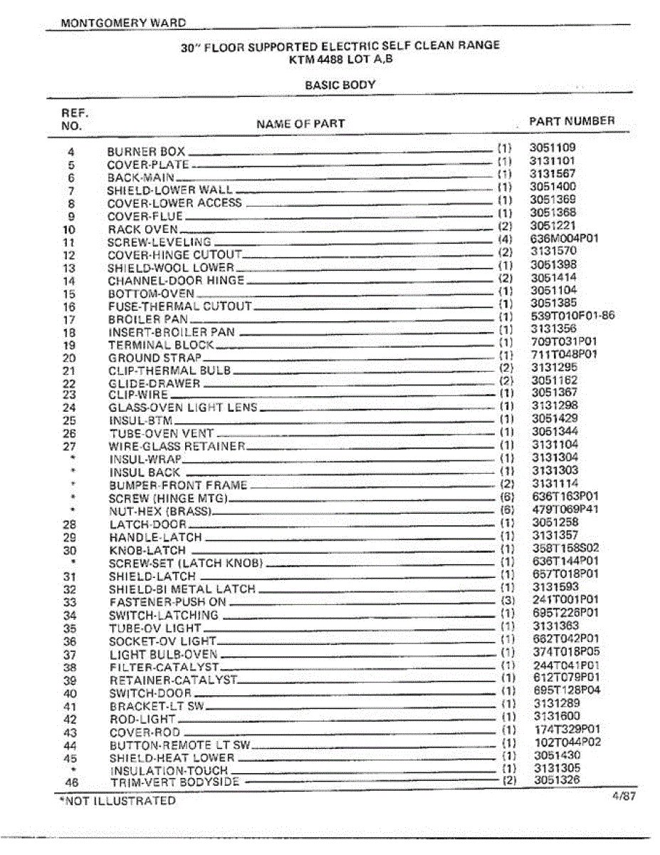 Parts for Frigidaire 4488B: 30" Floor / Basic Body Page 2 Parts