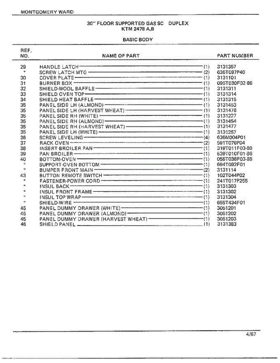 Parts for Frigidaire 2488A: 30" Floor / Basic Body Page 3 Parts