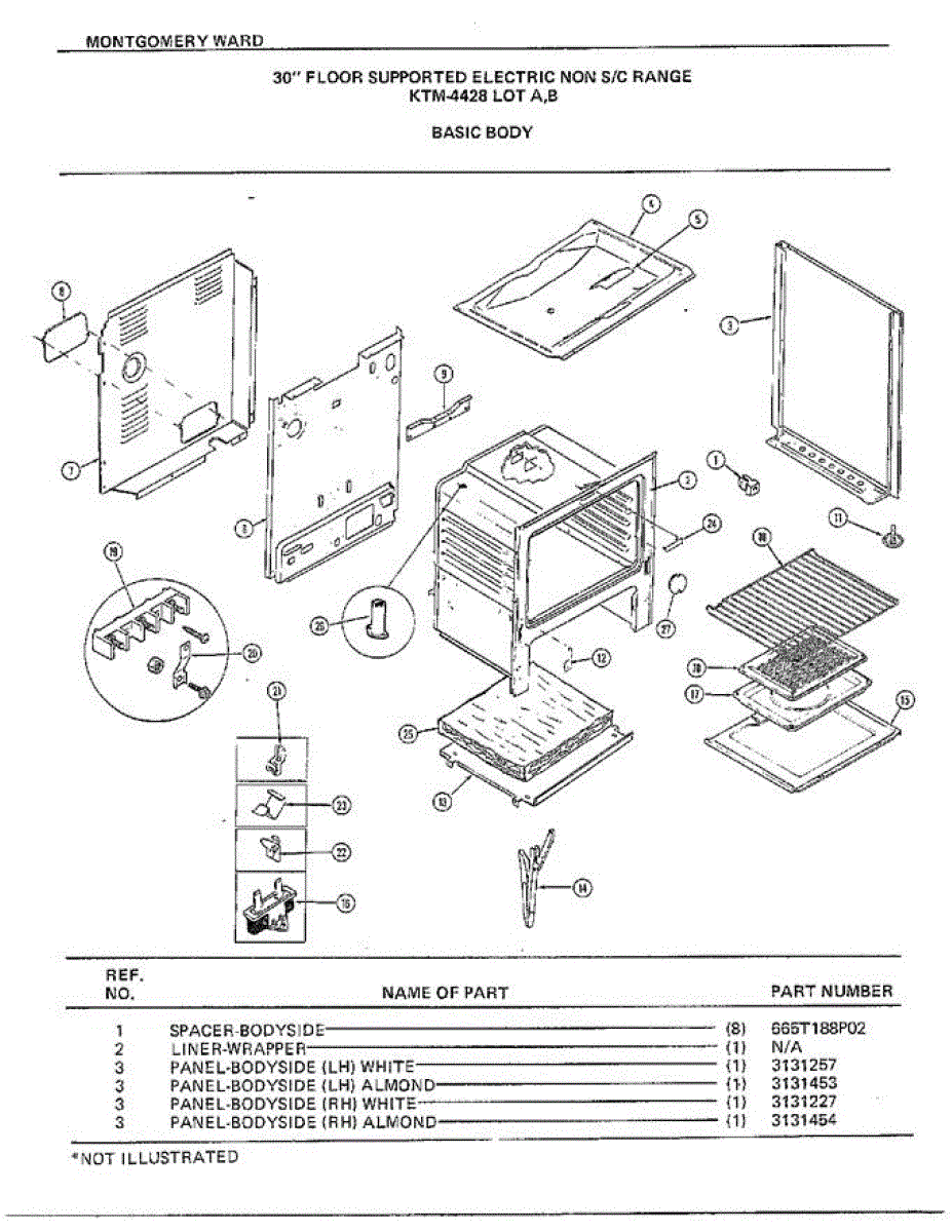 Parts for Frigidaire 4428A: 30" Floor / Basic Body Parts