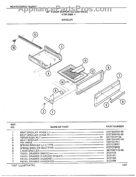 Parts for Frigidaire 2468A: 30` Floor / Broiler Parts